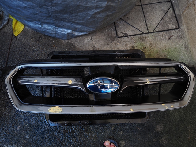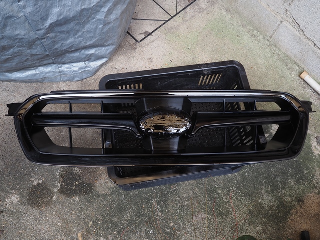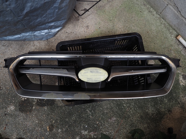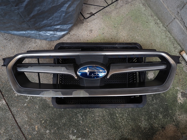 さてこれが取り外したフロントグリル。かなり痛々しい姿だな。