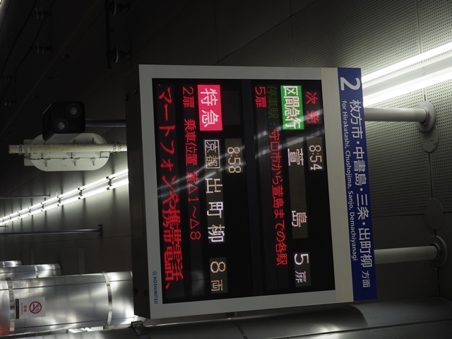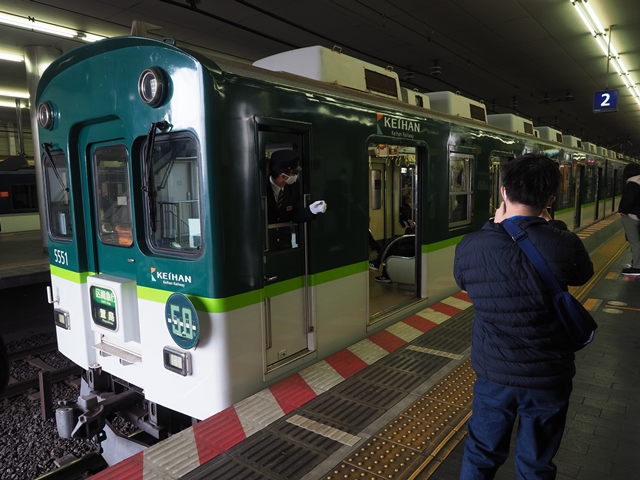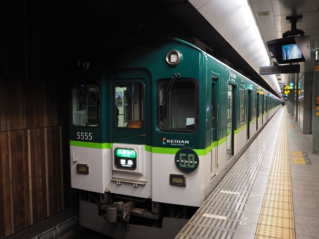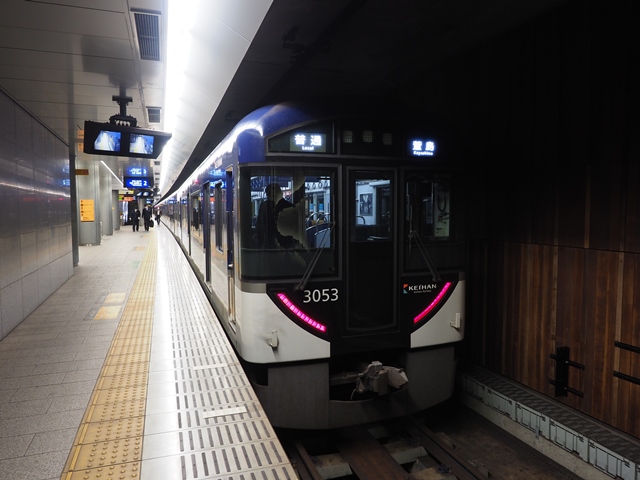 一旦地上に出て京阪中之島線にスイッチ。まだ0730過ぎとは言え人が少ないなあ。