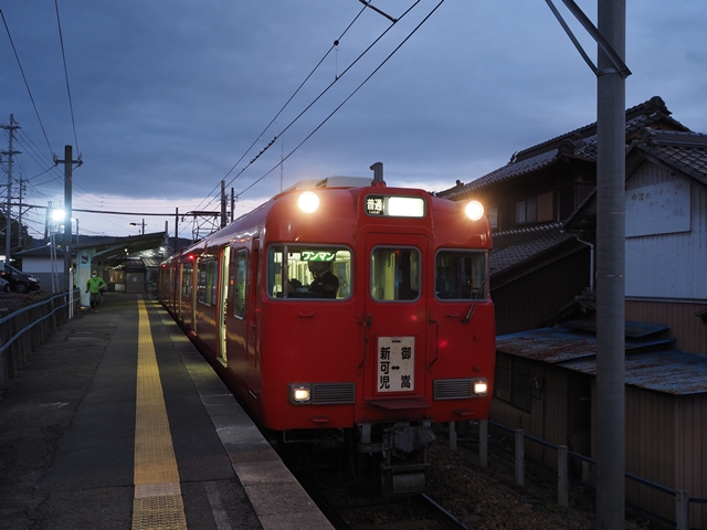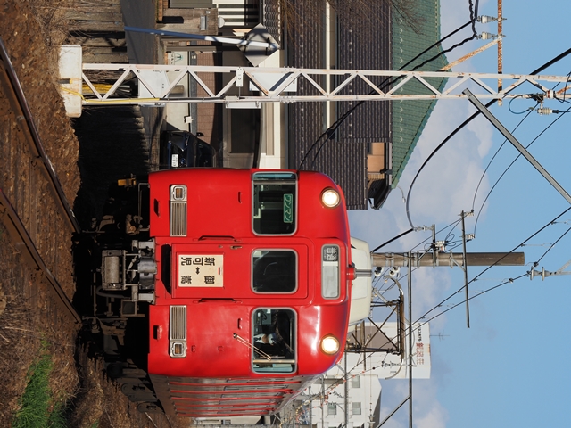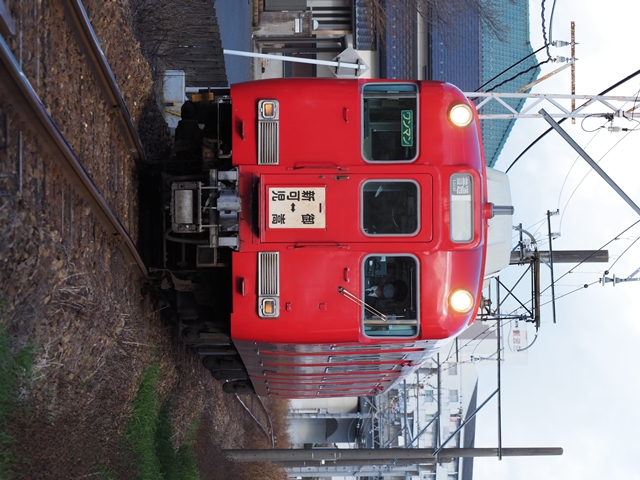 やってきたのは系統板を掲げた6000系。名鉄において、昔は掃いて捨てるほどあったのに今はおそらく数えるくらいしか見れないものだろう。