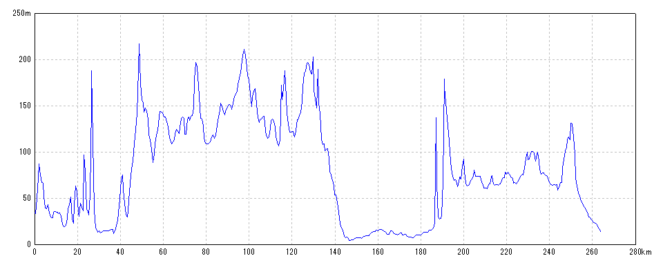 | 水平距離 | 264.12km | 沿面距離 | 264.86km |