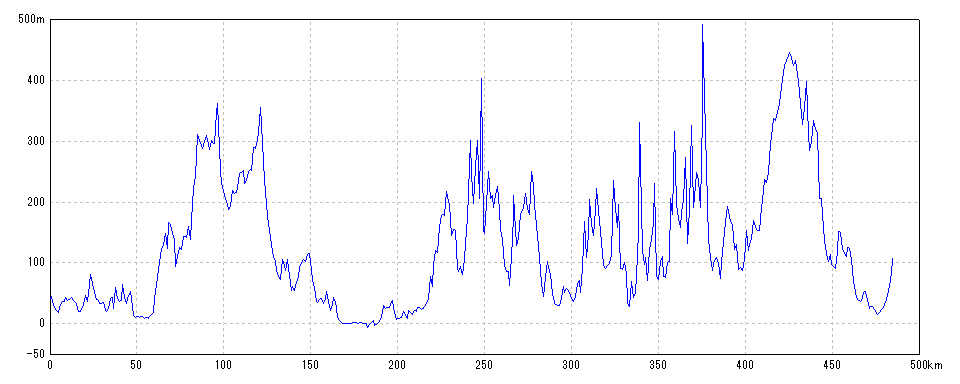 | 水平距離 | 484.18km | 沿面距離 | 492.67km |