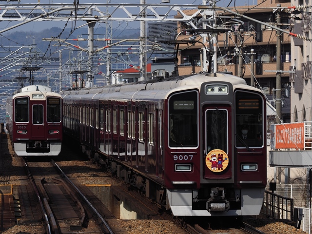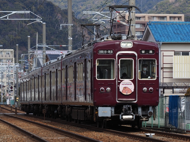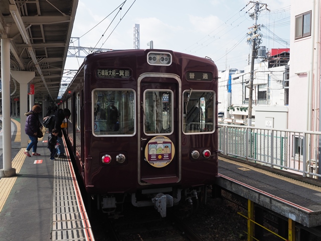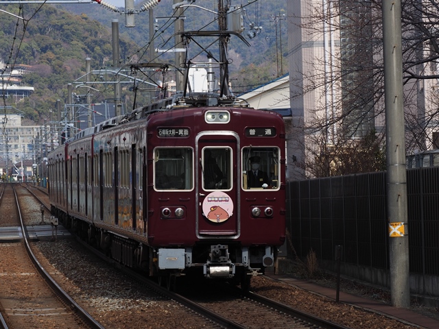箕面線は基本2編成で運用で、運が悪いとヘッドマーク掲出の編成に会えないことも多い。今日はちゃんと走っててくれた。