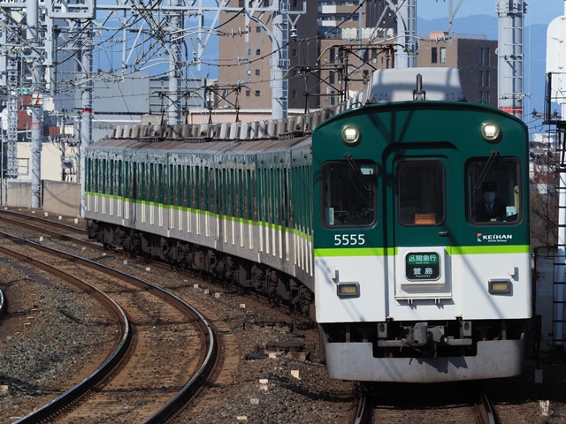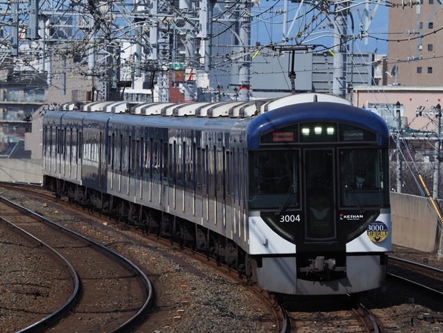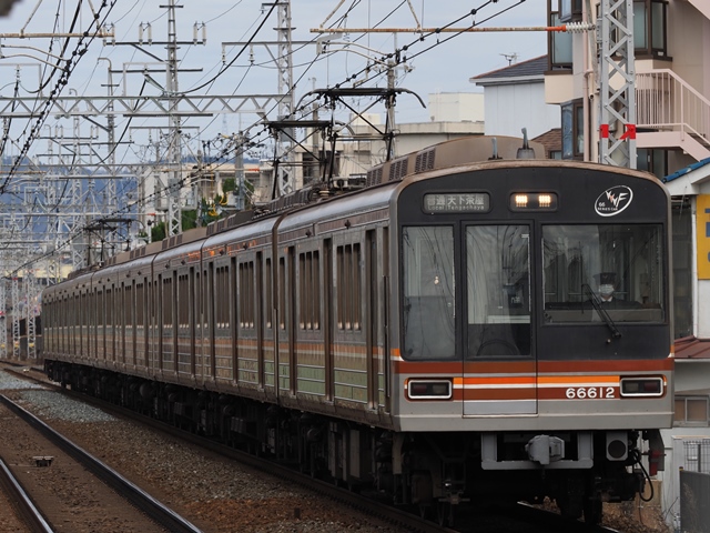 朝日を浴びて到着する門真市行きを撮影。3000系第2編成が準備する前の到着だったので撮り逃しになったのが残念。
