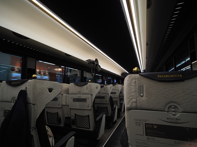 ノーチェックで乗ったけどやってきたのが3000系でガッツポーズ。せっかくだから乗ったことない3000系のプレミアムカーに乗ってみたかったのだ。