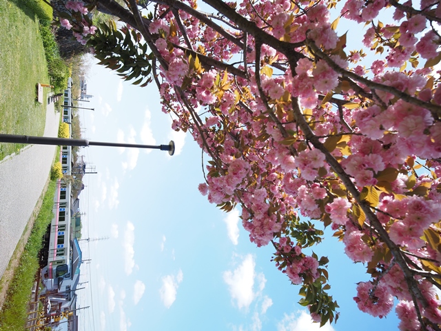 八重桜と電車を絡められないかで少し悩む。八重桜は影になると色が濁るんだよね。10mmでどうか。