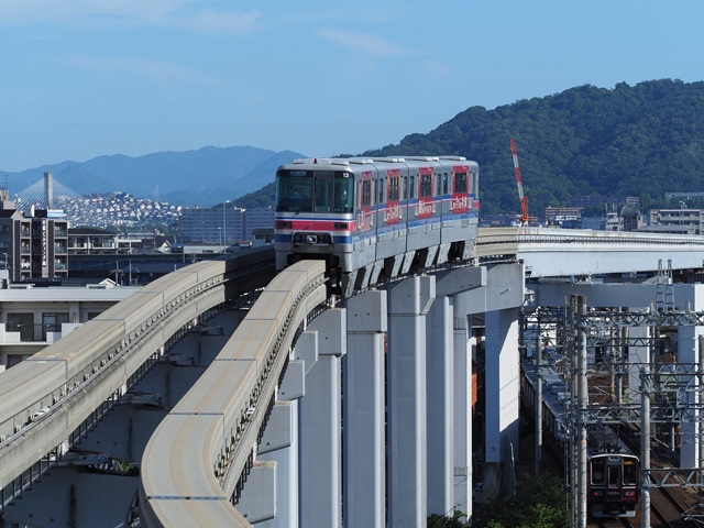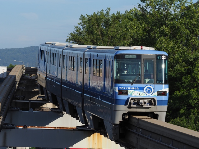 ホームでモノレールの撮影。カメラ構えたの久しぶりなもんだから1本目のブルーエール号が傾いた(逝)