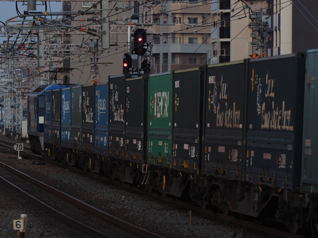 あ、EF210のコンテナだ。遅れてるのか今春のダイヤ改正で到着が逆になったのか。