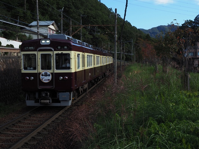 妙見口方のホームから山下行の5141を狙う。秋らしさ、出たかな。
