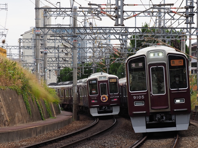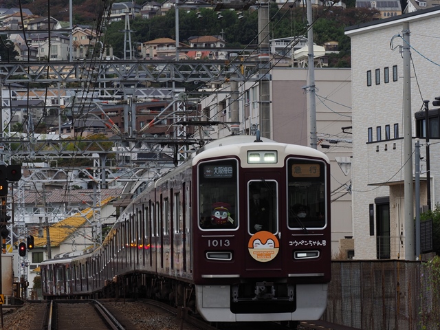 京都線の1300系の事情はちょっとわからないが神戸宝塚線のコウペンちゃん号は若番なので高速シャッターを切るとLED表示が切れてしまう。コウペンちゃん号でLED切らすとか愚かだよな。