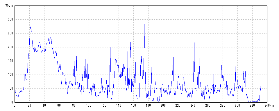 | 水平距離 | 330.97km | 沿面距離 | 335.73km |