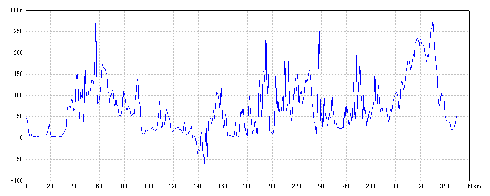 | 水平距離 | 349.59km | 沿面距離 | 354.30km |