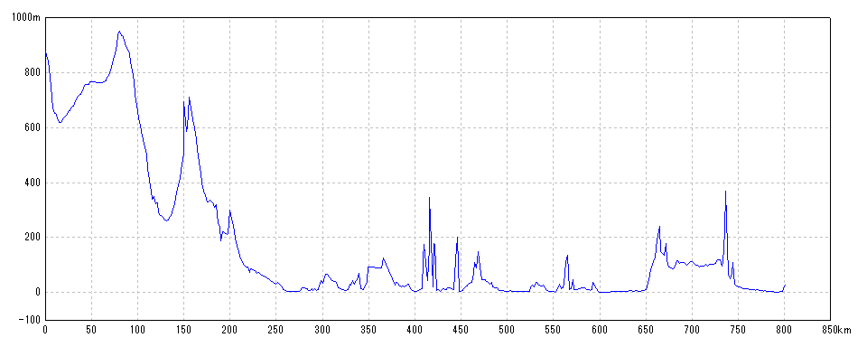 | 水平距離 | 801.89km | 沿面距離 | 804.69km |