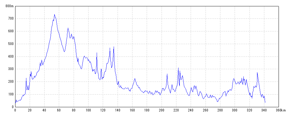 | 水平距離 | 341.48km | 沿面距離 | 344.96km |