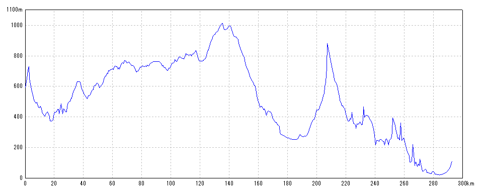 | 水平距離 | 292.60km | 沿面距離 | 294.92km |