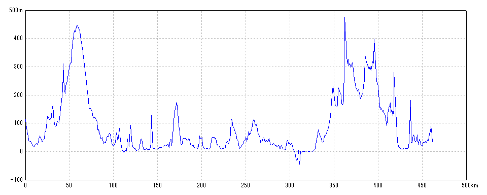 | 水平距離 | 461.25km | 沿面距離 | 464.83km |