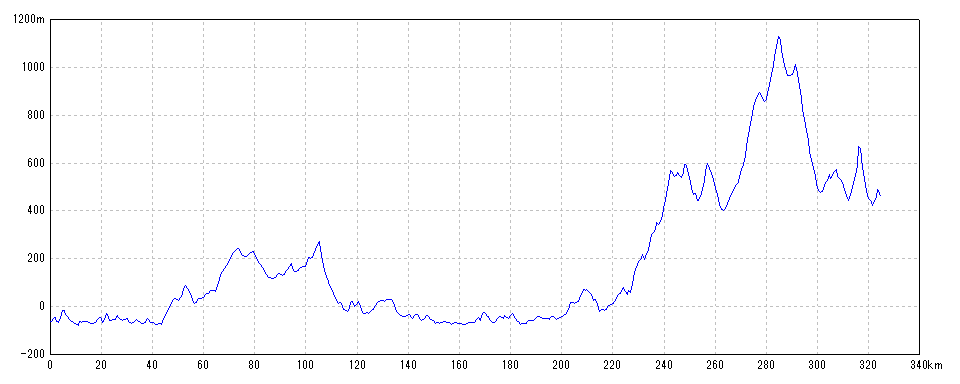 | 水平距離 | 324.51km | 沿面距離 | 324.92km |
