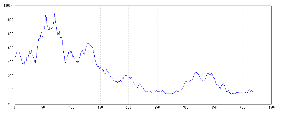 | 水平距離 | 417.60km | 沿面距離 | 418.04km |