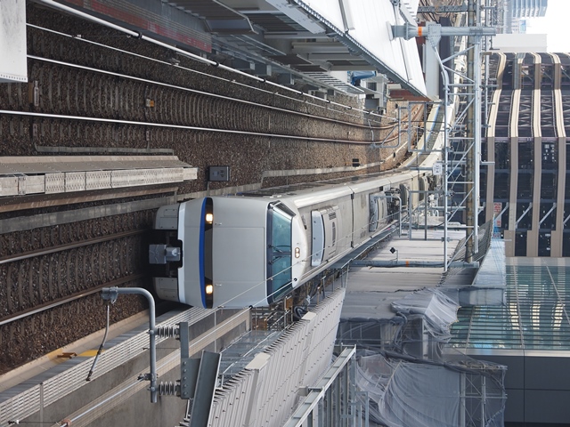 使わないホームに階段が工事されているのはなんだろう、と考えてああそうか、うめきた新駅への移動ルートか。