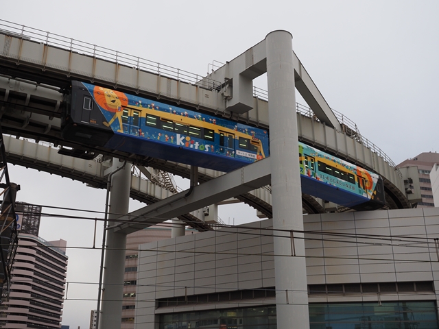 見上げるとモノレール。