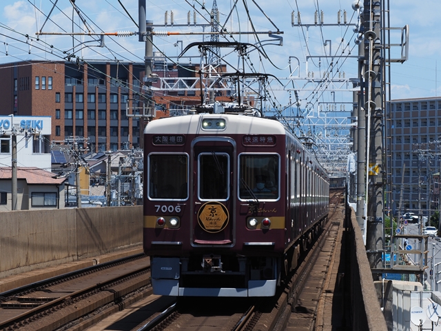 顔つきが違う7320の特急運用を撮りそこねたがなんとか天神祭のヘッドマークも収めることができた。