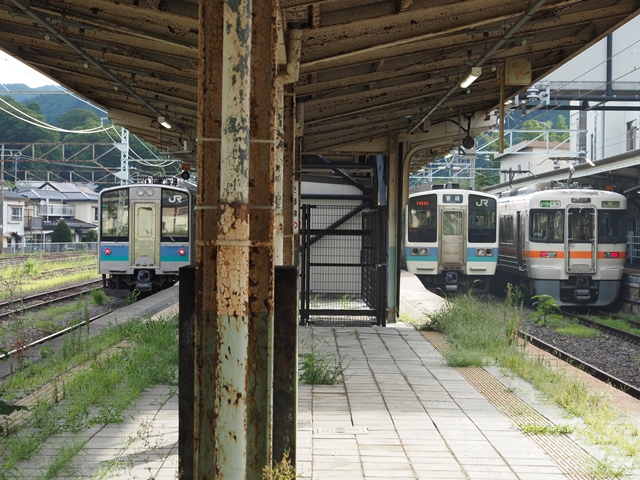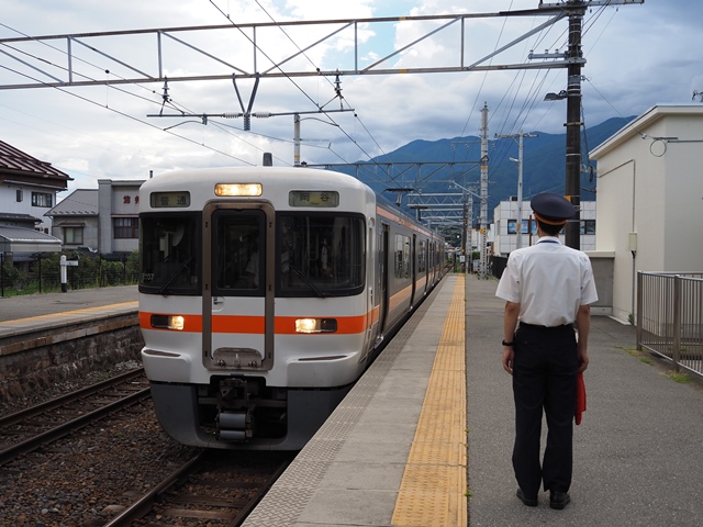 さて駅長の隣には塩尻から親子連れの片割れ。それはいいんだけど山賊焼きやら焼きそばやら匂いの強いものむしゃむしゃやりやがった。