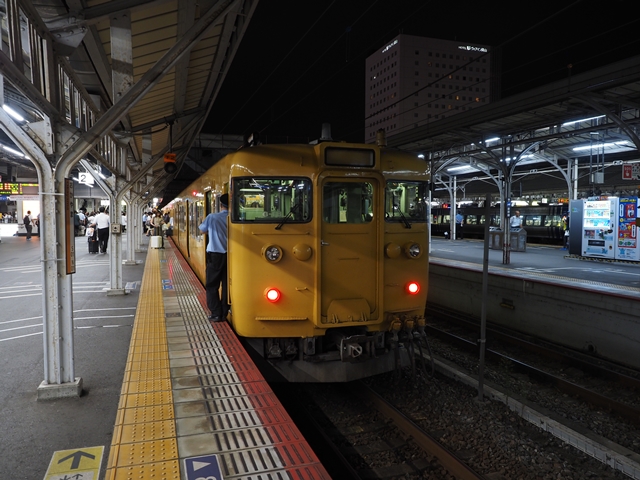 1930岡山着。姫路から普通の人が結構乗り通してるんだな。