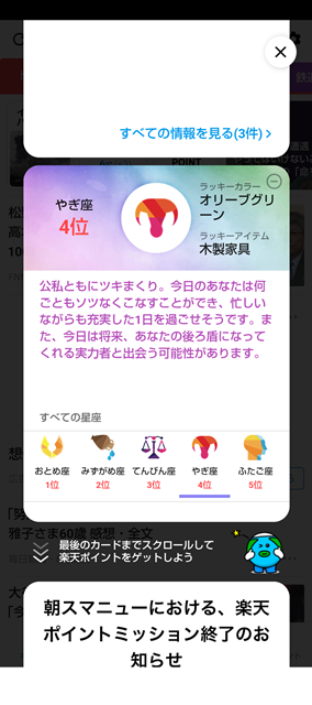 スマートニュースが毎朝送ってくる占い、ランキング適当だろ絶対(逝)