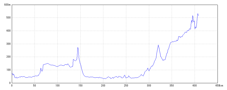 | 水平距離 | 408.13km | 沿面距離 | 408.48km |