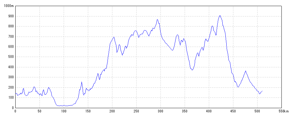 | 水平距離 | 509.95km | 沿面距離 | 510.36km |