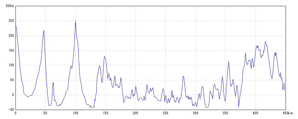 | 水平距離 | 448.29km | 沿面距離 | 448.77km |