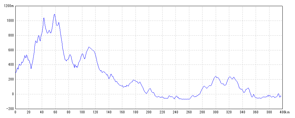 | 水平距離 | 397.94km | 沿面距離 | 398.32km |