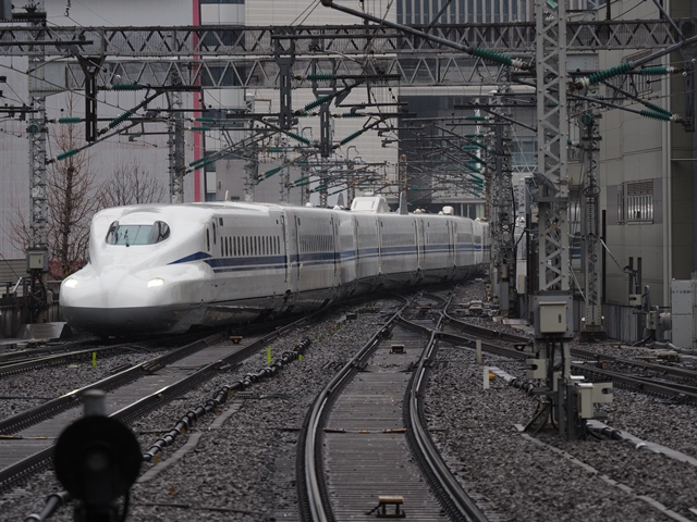 雨の中N700Sが東京駅に到着する。