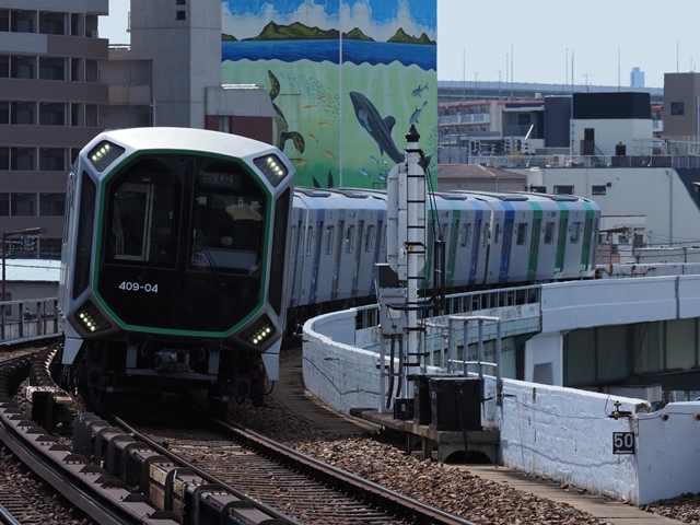 最初は長田方面行を撮ろうと思ったけど思ったより制約があるな。コスモスクエア行を撮るのがいいi感じ。