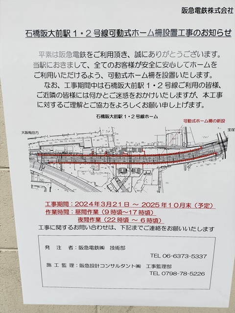 石橋阪大前に可動式ホーム柵設置のお知らせ。