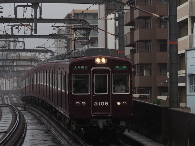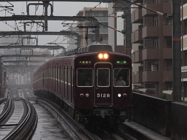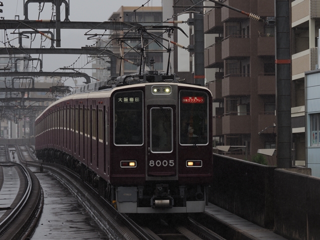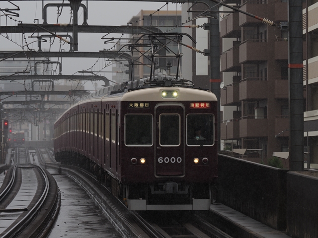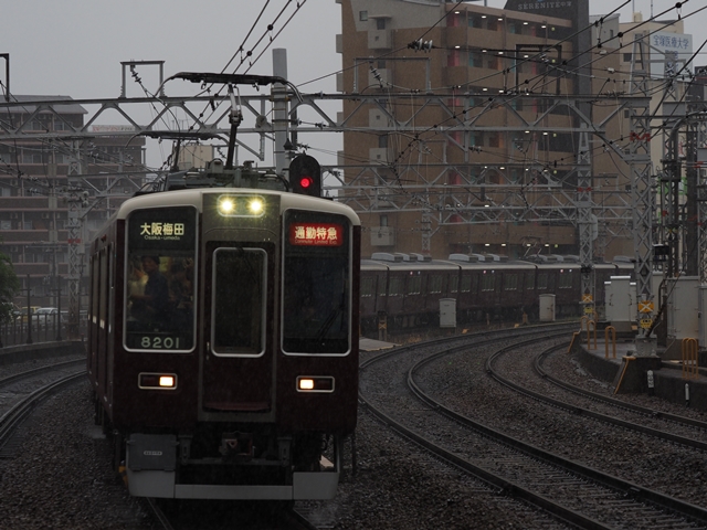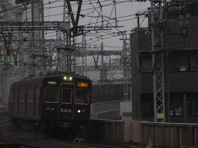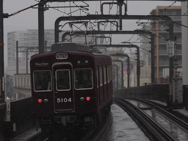 本日は別用で有給休暇なので朝練に出る。平日しか走らない朝の京都線急行を上新庄で撮ろう。雨だけどそれはそれで迫力が出そう。