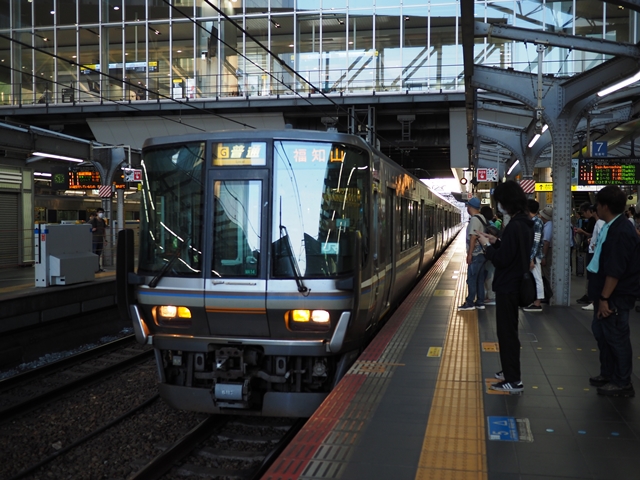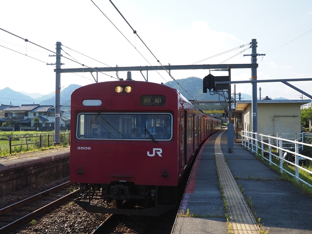 223系5500番台のワンマン列車。2連のワンマン列車の典型的システムで大きな駅以外は2両目のドアは締め切られるってやつだ。この列車でいえばこの先2両目のドアが開くのは和田山と豊岡のみとなる。