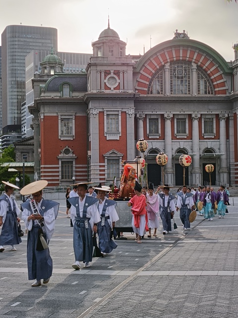 天神祭の陸渡御ともかち合った。