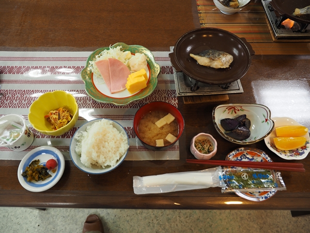 0700朝食。サワラの塩焼きが美味しかった。