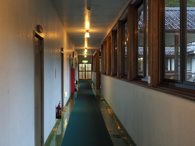 廊下。個室が並ぶので印象はたぶん学校時代と大きく違う。