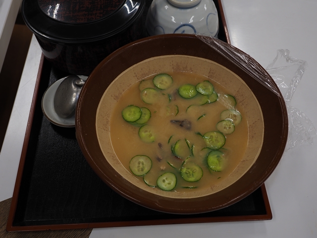 1830夕食。今日はさつま汁にした。甘い味噌にアマゴをスリ入れた冷汁だ。