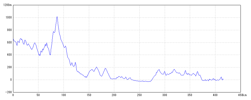 | 水平距離 | 416.06km | 沿面距離 | 416.41km |