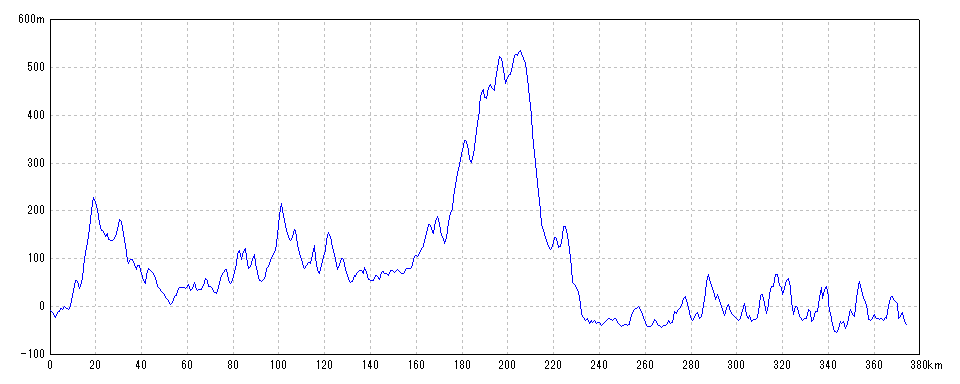 | 水平距離 | 374.02km | 沿面距離 | 374.32km |
