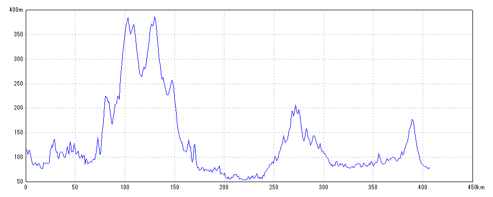 | 水平距離 | 406.94km | 沿面距離 | 407.73km |
