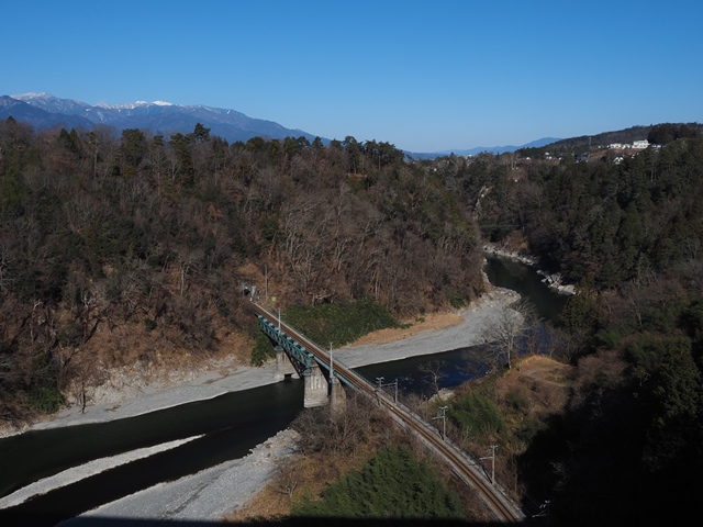 つつじ橋を通る方が龍峡亭には近いのだけど、昨年から変わらず東岸の階段が通行止めらしい。なので天竜峡大橋を戻るルートにする。文市氏が道を知ってるので駅長はついてくだけ(逝)