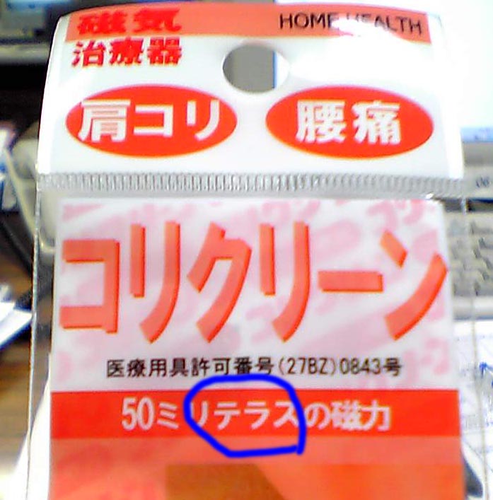 磁気の単位はテスラである。単純に誤植かな、と思って裏を返すと裏も堂々テラスの文字(逝)恐らくはメガの次のテラ、と混同してそのまま通ってしまったんだろうが……哀れである。取り敢えず確保しておこう(逝)