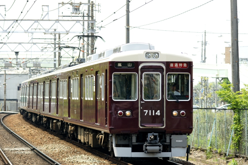 嵐山駅のホーム有効長の関係で6連が最大となるため、神戸線から直通する編成は7014F、7017F、7023Fの3編成の限定となります。