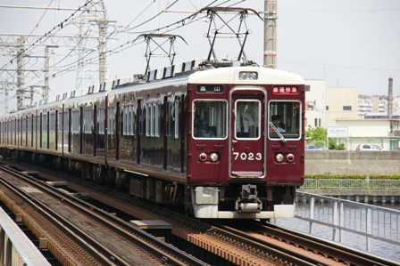 Photo:神崎川 2011/05/08 7023Fも直通特急運用に就きます。