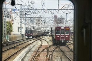 嵐山行電車は中津を出るとこの渡り線経由で宝塚線に入り、梅田駅6号線に入ります。客扱いは行わず今度は宝塚線線路を走り淀川を渡り、十三手前で京都線に渡っていました。