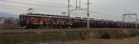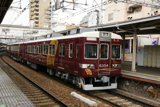 そんな時。京都線に観光特急を、という阪急電鉄からの発表が注目を集めます。何が使われるのだろう。阪急のことだから一般車にラッピングした程度では。いろいろな憶測がされましたが、2011年、6354Fが6連でアルナ車両から京とれいんとして出場しました。
