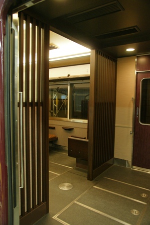 そして中間の3,4号車が最も話題を集めた京町屋風車輌です。取りあえず写真を。
